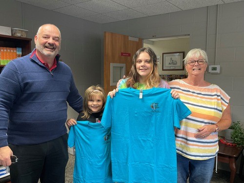 10/27/2023 - Kayla and Hannah received their Kingdom Kids shirts today. A proud Grandmother was celebrating with them. Thanks again to Sandy Samp who made this possible.