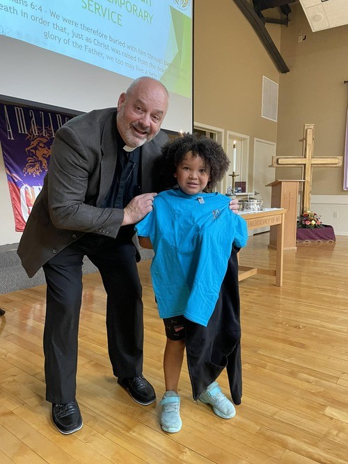 10/4/2023 - The Kingdom Kids received shirts today. We celebrate with Colton.