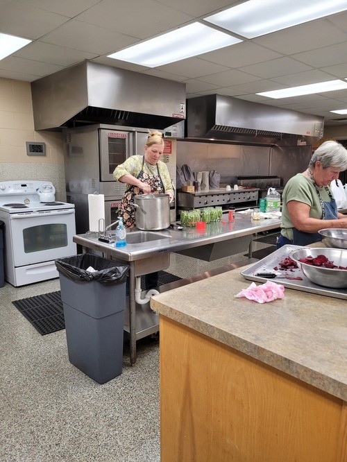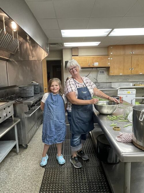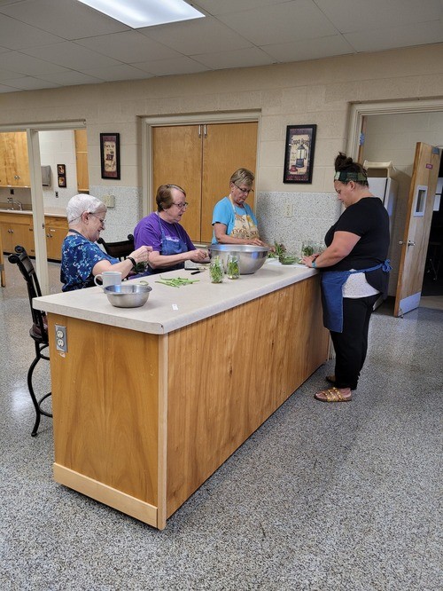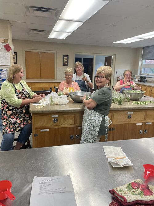 8-13-2024 - Dilly Bean Canners working hard. Thank you to the “Bean Picker” and Karen & Roy for supplying the beans. The final picture was approved by Lori